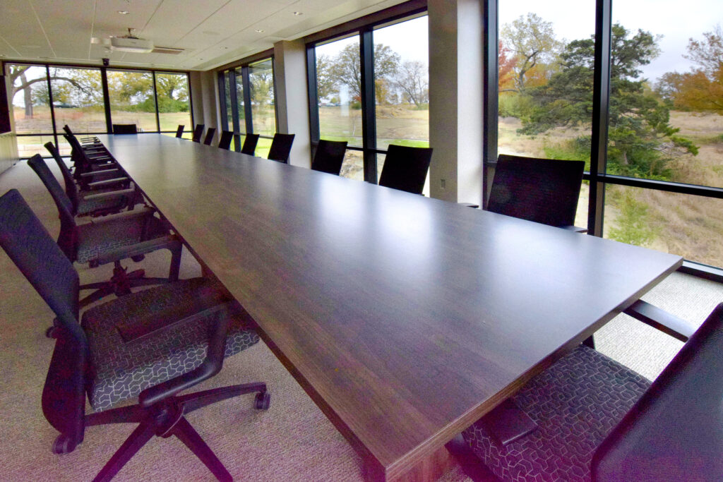 Located on the fourth floor of the Sunflower Building, the Sunflower Boardroom is the larger of our two boardrooms. It has access to our onsite catering kitchen, Sunflower Kitchen/dining area and west patio and is an ideal location for board or staff meetings and retreats.